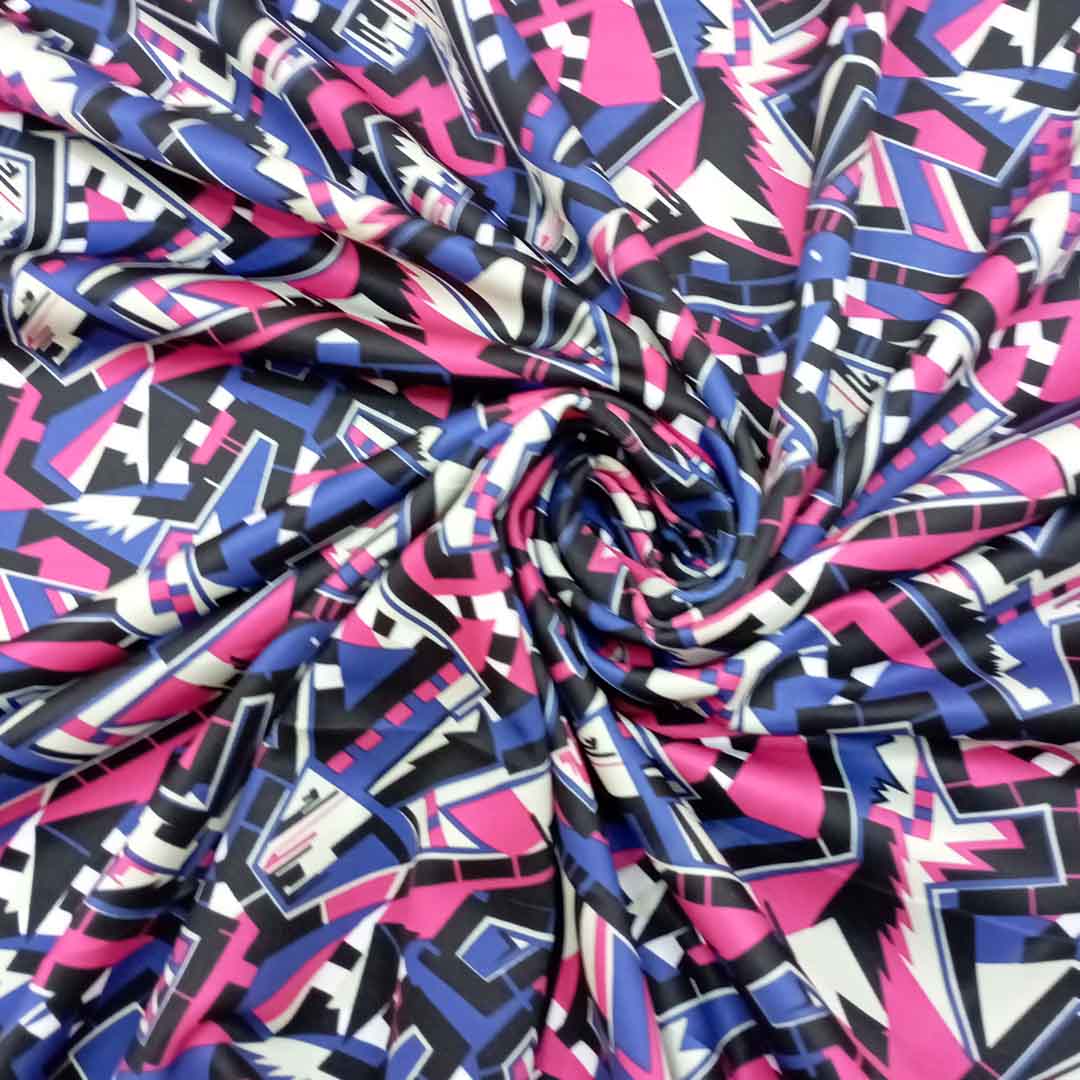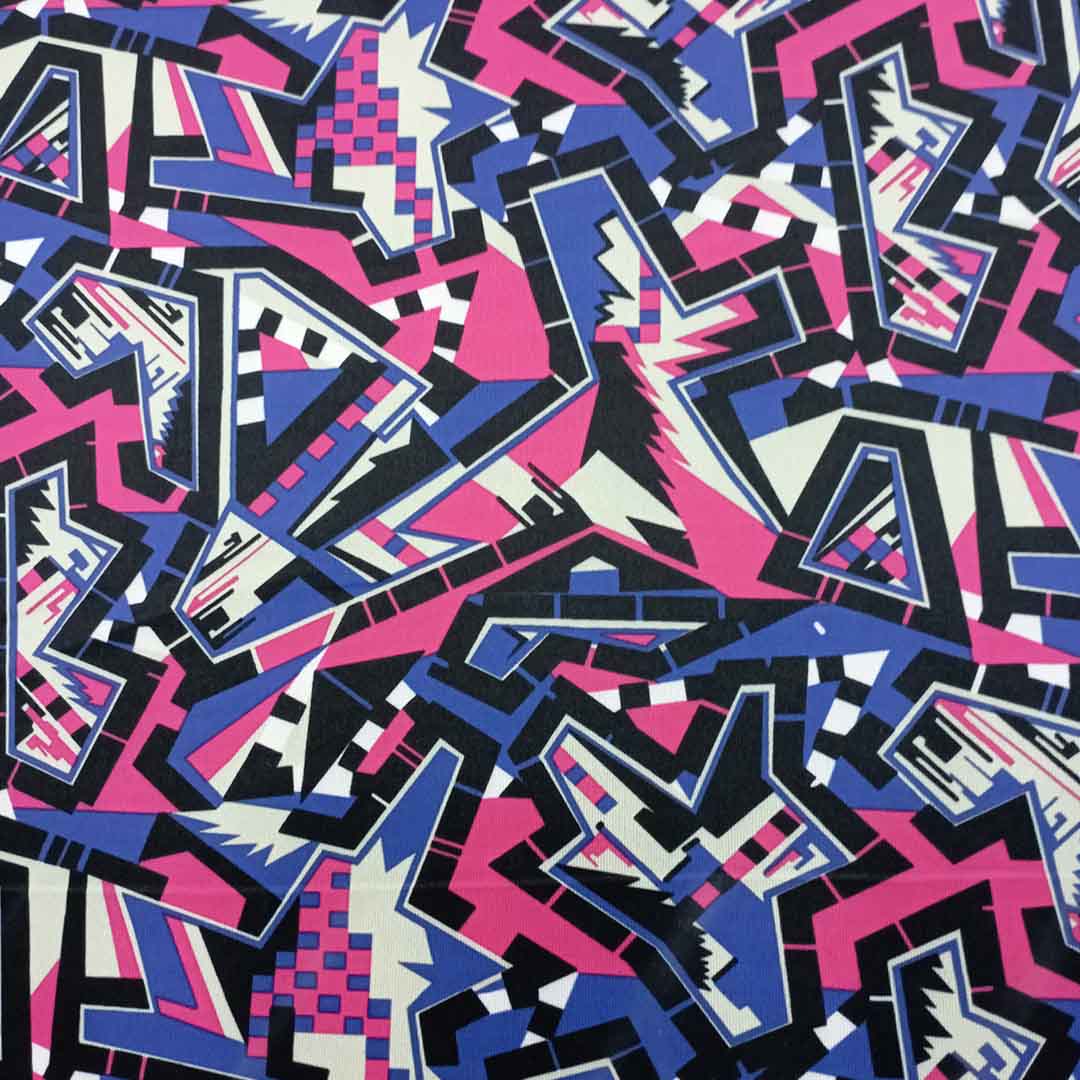 Scuba Digital Print Blue, Pink,Black & White Abstr