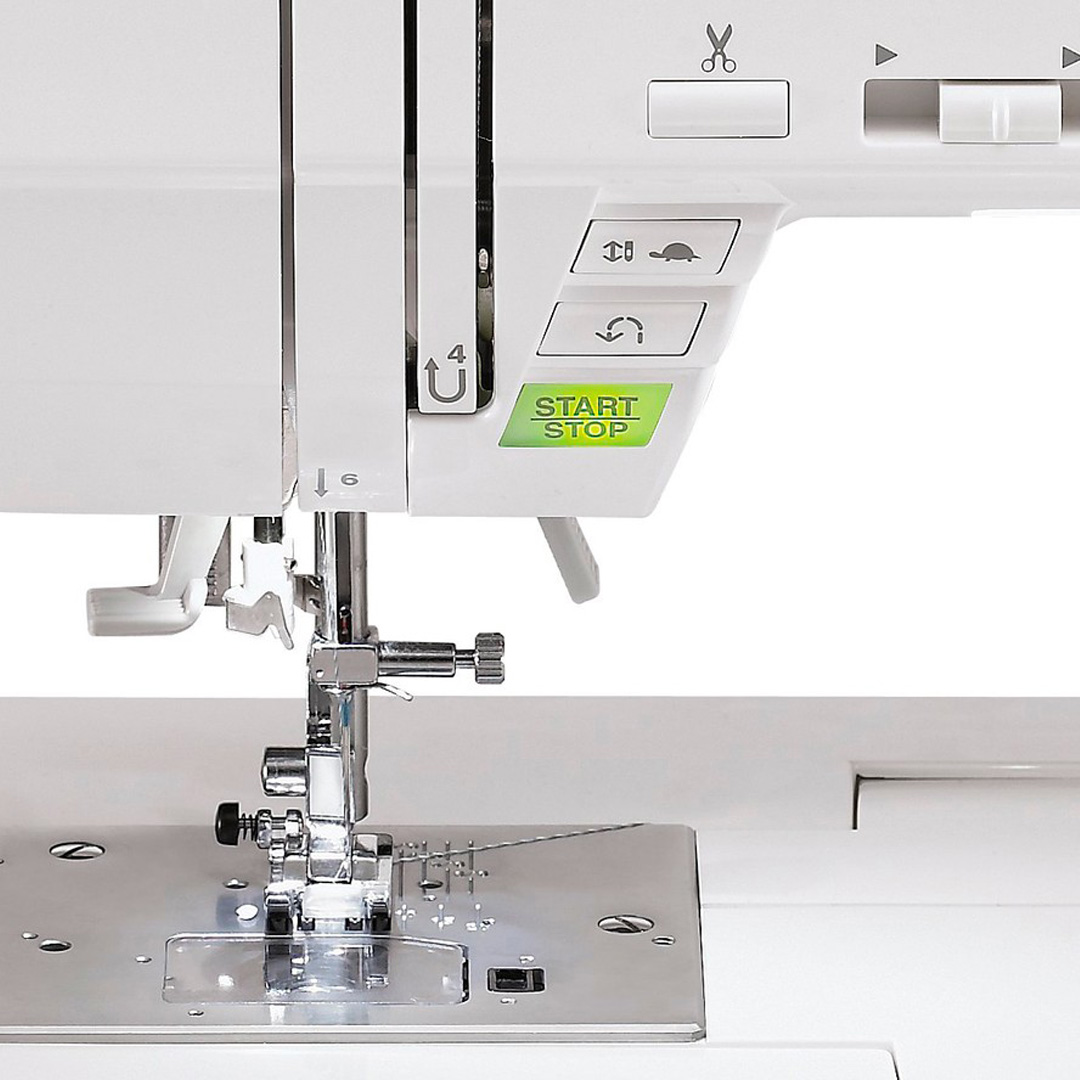 - One-Touch Electronic Features: Equipped with a start/stop button, speed control, and programmable needle up/down, all enhancing ease and precision.