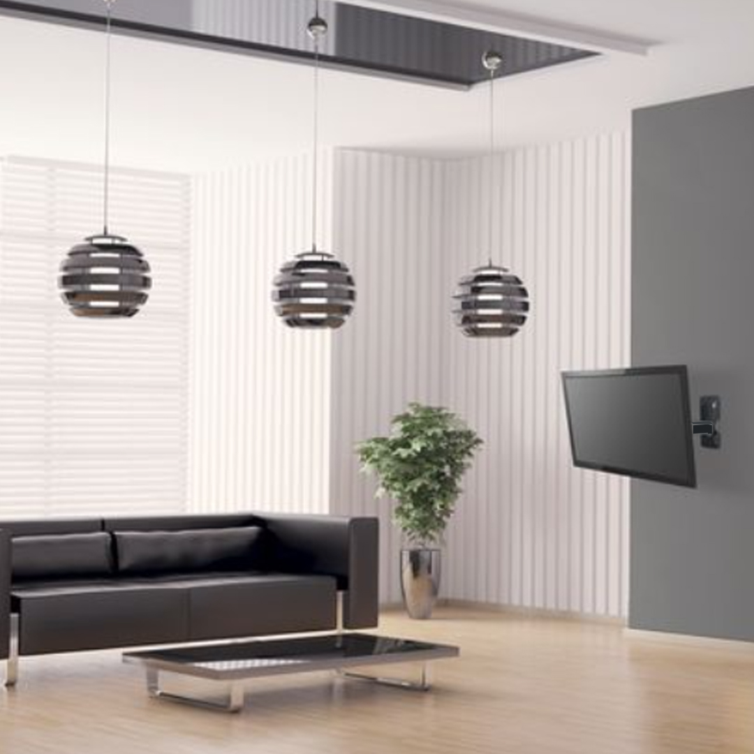 Additionally, the Barkan BRA2300B includes an articulating arm that extends and retracts, offering further flexibility. This feature allows you to pull the TV away from the wall, making it easier to access ports and cables behind the TV and adjust the viewing distance according to your preference.