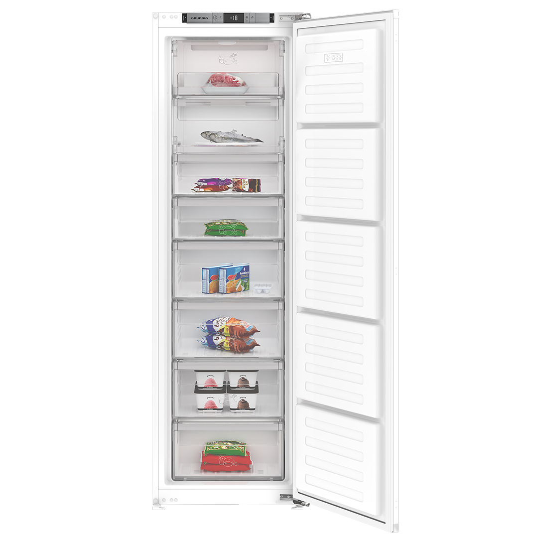 GRUNDIG Integrated Freezer GFNI 12411 combines seamless design with high-performance freezing technology to keep your food fresh and organized. This sleek, built-in freezer is the perfect addition to any modern kitchen, offering generous storage space and energy-efficient features.