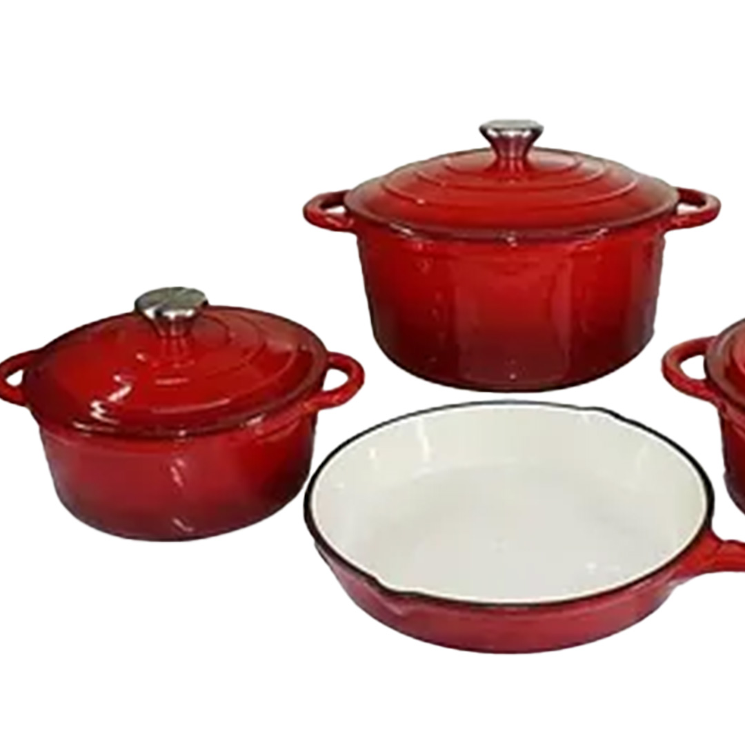 Cast Iron Pot Set 7 Piece Red